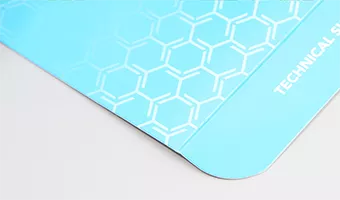 Clear coating applied using the CMYK printing method. Available in gloss, satin, or matte.