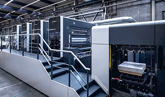 High-quality printing method that utilizes a printing plate and rubber blanket to transfer designs on paper. Best for large runs.