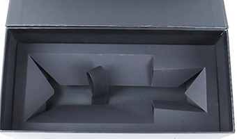 A luxurious fabric-lined insert that enhances the presentation of high-end products.